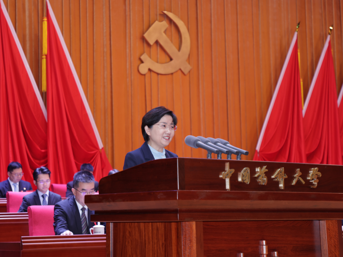 戴建君代表中国共产党中国药科大学委员会作了题为《坚守兴药为民初心 扛牢教育强国使命为加快建成药学特色世界一流大学而团结奋斗》的报告。报告共分为四个部分:过去五年的砥砺奋斗;勇担教育强国建设新使命;奋力开创高质量发展新格局;扎实推进新时代党的建设。
